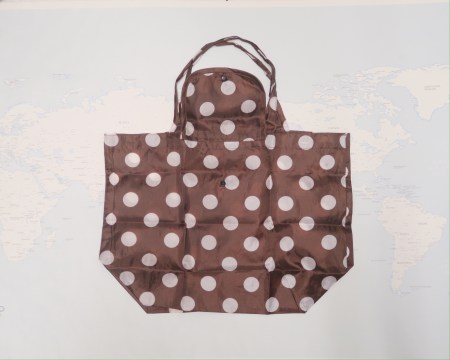 購於大創,39元,收納方式參考 Longchamp ,不像折傘的傘套往往會失蹤,是我的愛將,沒量過尺寸但應該能裝B4,適合去超市採買時使用,雖然很薄,但也用了兩三年了,還沒有掉線頭,相當耐用。活潑的點點讓人看了就開心。